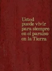 Texto religioso o espiritual (parece publicación doctrinal) que promete vida eterna en un 'paraíso en la Tierra'. Por cada 10 membresías que se re utilicen, reforestamos 1 árbol, cumpliendo nuestro desafío de reforestación de más de 10.000 nuevos árboles