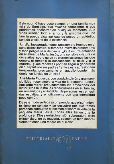 Historia de una niña de 12 años cuya corta vida ilumina nuestro peregrinar hacia el cielo. Ampliamente ilustrado con material fotográfico, contiene testimonios de cómo enfrentó su enfermedad y se la entregó a la Virgen María. Por cada 10 membresías que se re utilicen, reforestamos 1 árbol, cumpliendo nuestro desafío de reforestación de más de 10.000 nuevos árboles