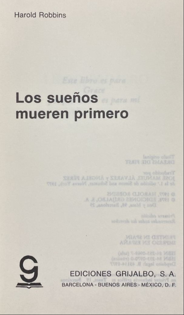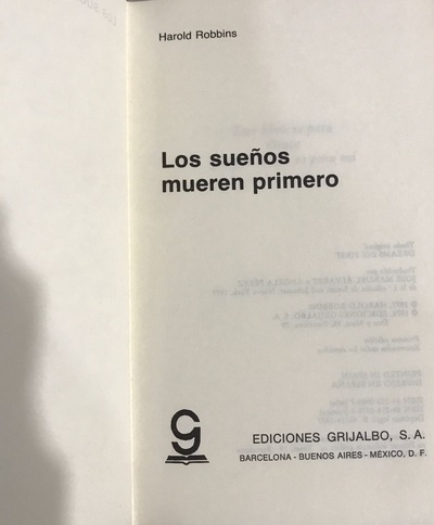 Los sueños mueren primero de Harold Robbins:Gareth Brendan un hombre que convierte su visión personal de la liberación sexual en un vasto imperio económico cimentado en Macho una revista que escandaliza fascina a millones de lectores con sus comentarios audaces y sus desnudos sorprendentes. Robbins no había escrito nunca una novela que revelara con igual brillantez la vida los amores y la intensa ambición de un hombre que exige todo de la vida pero cuyo destino está dominado por un secreto del que ni todo el dinero del mundo puede desvincular. A partir del momento en que Gareth Brendan apuesto joven fuerte sexualmente agresivo se hace cargo de un semanario al borde de la ruina el Hollywood Express y lo transforma en una sensacional publicación Underground su vida queda ligada a la de su tío Lonergan a sus contactos con el hampa y a su inescrupulosa sed de poder. Por cada 10 membresías que se re utilicen, reforestamos 1 árbol, cumpliendo nuestro desafío de reforestación de más de 10.000 nuevos árboles