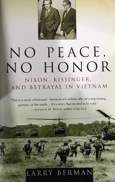 On April 30, 1975, when U.S. helicopters pulled the last soldiers out of Saigon, the question lingered: Had American and Vietnamese lives been lost in vain? When the city fell shortly thereafter, the answer was clearly yes. The Agreement on Ending the War and Restoring Peace in Vietnam -- signed by Henry Kissinger in 1973, and hailed as "peace with honor" by President Nixon -- was a travesty. In No Peace, No Honor, Larry Berman reveals the long-hidden truth in secret documents concerning U.S. negotiations that Kissinger had sealed -- negotiations that led to his sharing the Nobel Peace Prize. Based on newly declassified information and a complete North Vietnamese transcription of the talks, Berman offers the real story for the first time, proving that there is only one word for Nixon and Kissinger's actions toward the United States' former ally, and the tens of thousands of soldiers who fought and died: betrayal. On April 30, 1975, when U.S. helicopters pulled the last soldiers out of Saigon, the question lingered: Had American and Vietnamese lives been lost in vain? When the city fell shortly thereafter, the answer was clearly yes. The Agreement on Ending the War and Restoring Peace in Vietnam -- signed by Henry Kissinger in 1973, and hailed as "peace with honor" by President Nixon -- was a travesty. In No Peace, No Honor, Larry Berman reveals the long-hidden truth in secret documents concerning U.S. negotiations that Kissinger had sealed -- negotiations that led to his sharing the Nobel Peace Prize. Based on newly declassified information and a complete North Vietnamese transcription of the talks, Berman offers the real story for the first time, proving that there is only one word for Nixon and Kissinger's actions toward the United States' former ally, and the tens of thousands of soldiers who fought and died: betrayal. Por cada 10 membresías que se re utilicen, reforestamos 1 árbol, cumpliendo nuestro desafío de reforestación de más de 10.000 nuevos árboles